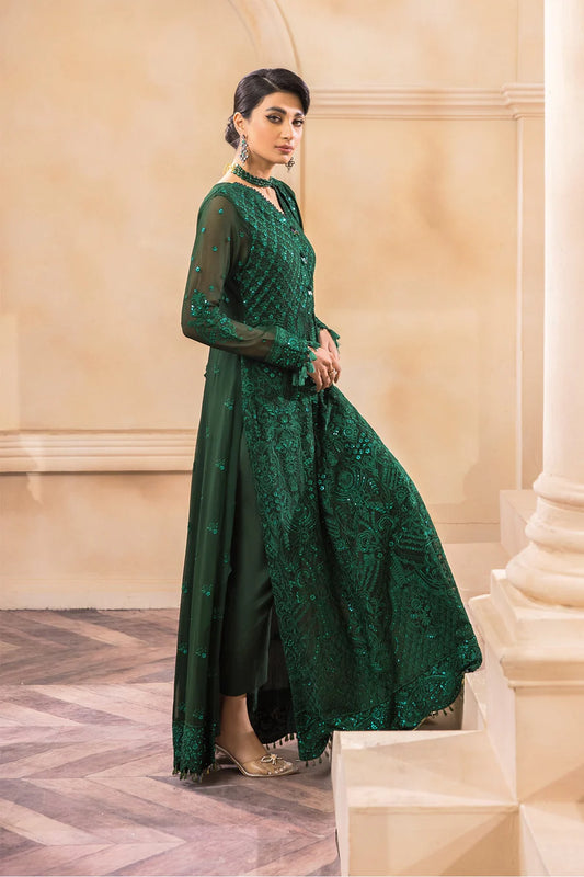 Bottle Green Pakistani Chiffon Designer Wear | Embroidered Wedding & Formal Dress
