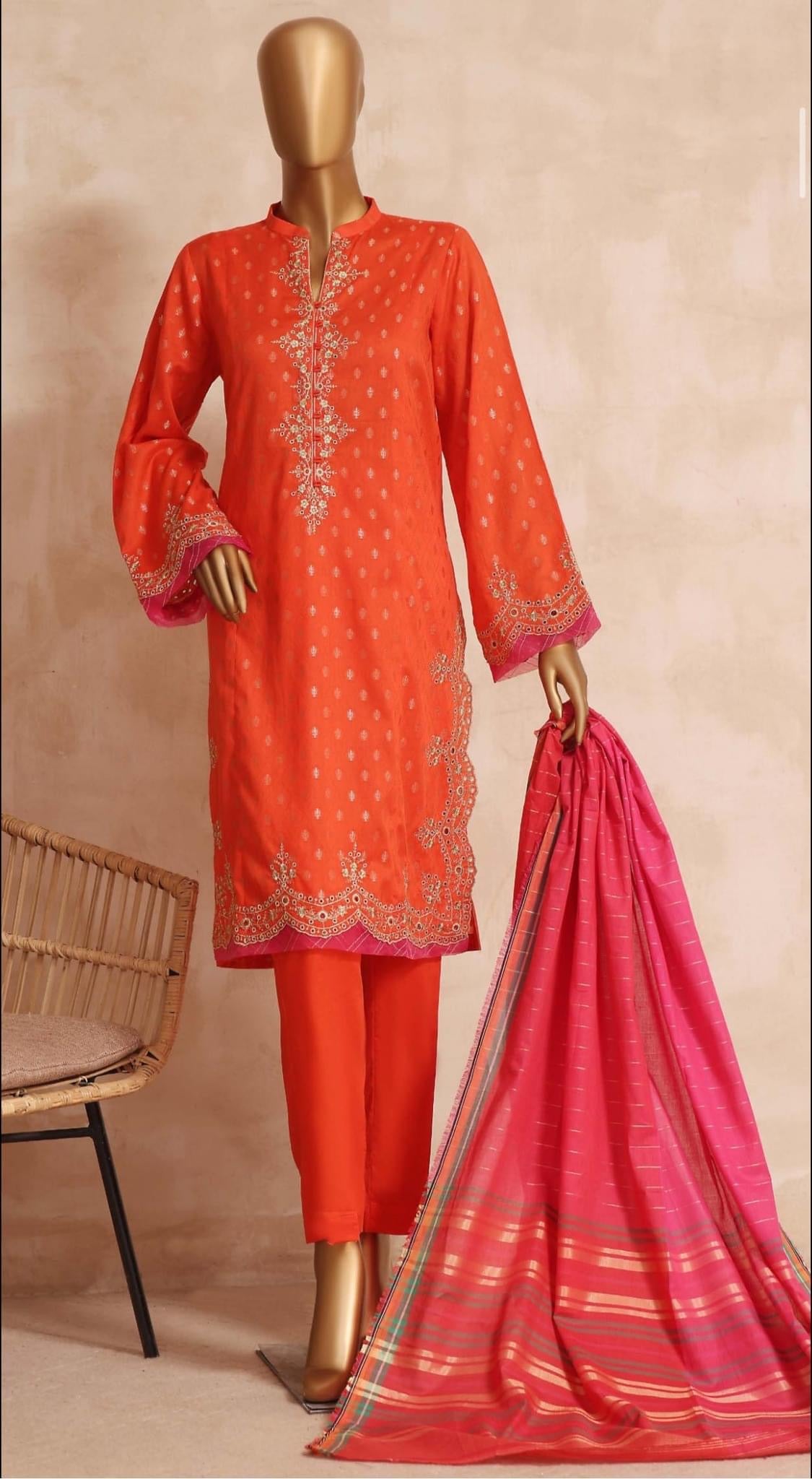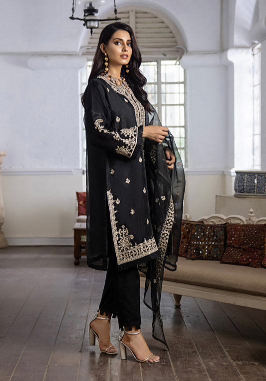 Asim Jofa Embroidered Raw Silk 3 piece Suit with Velvet Shawl Dupatta