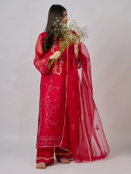 AGHANOOR 3 Piece - Pure Organza Embroidered Suit