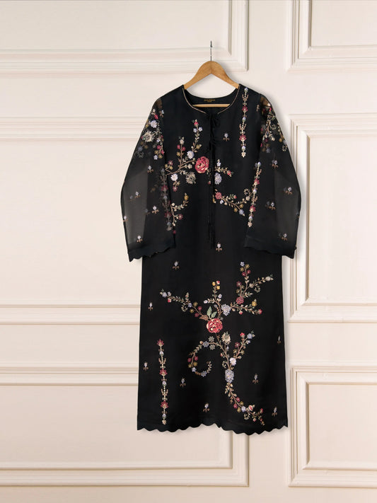 3 PIECE - PURE COTTON NET EMBROIDERED FROCK