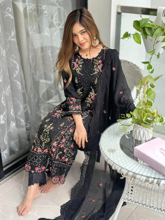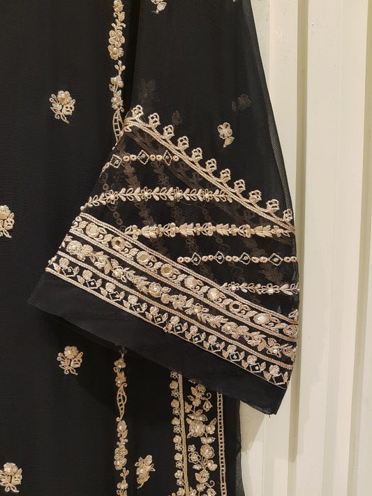 AGHANOOR 3 PIECE 100% PURE CHIFFON EMB SUIT