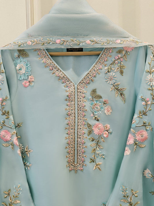 Aghanoor Embroidered Organza 3 Piece Suit