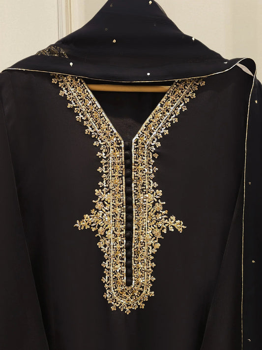 AGHANOOR 3 PIECE PURE SILK NET EMBROIDERED SUIT