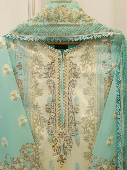 Aghanoor Heavily Embroidered Organza 3 Piece Suit