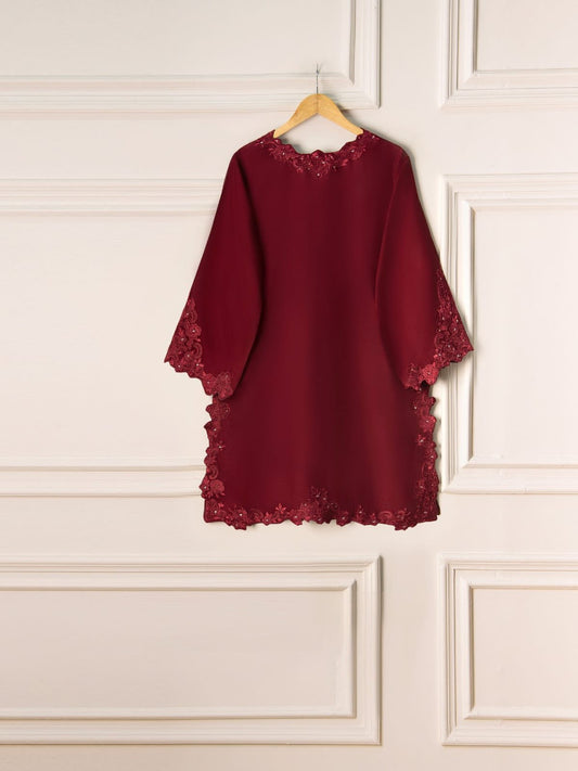 Charizma Embroidered Burgundy Velvet 3 Piece