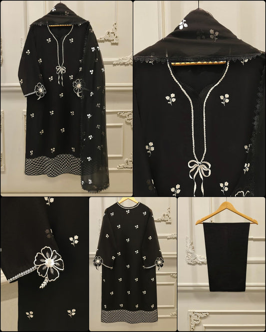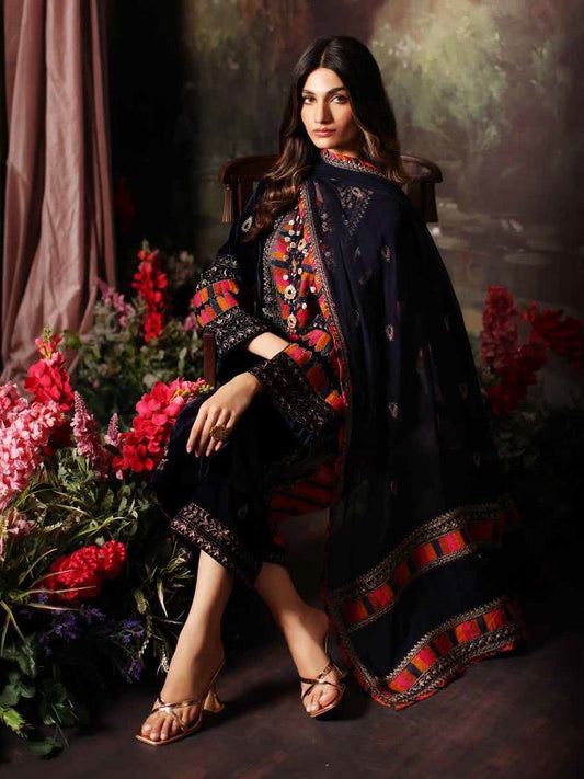 Charizma Embroidered Black Velvet 3 Piece