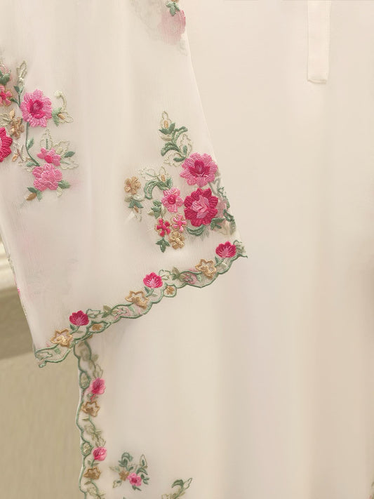 AGHANOOR 2 PIECE 100% PURE CHIFFON EMBROIDERED SHIRT WITH DUPATTA