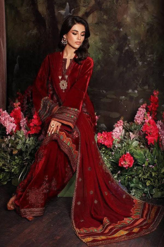 Charizma Embroidered Red Velvet 3 Piece