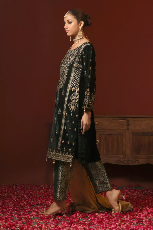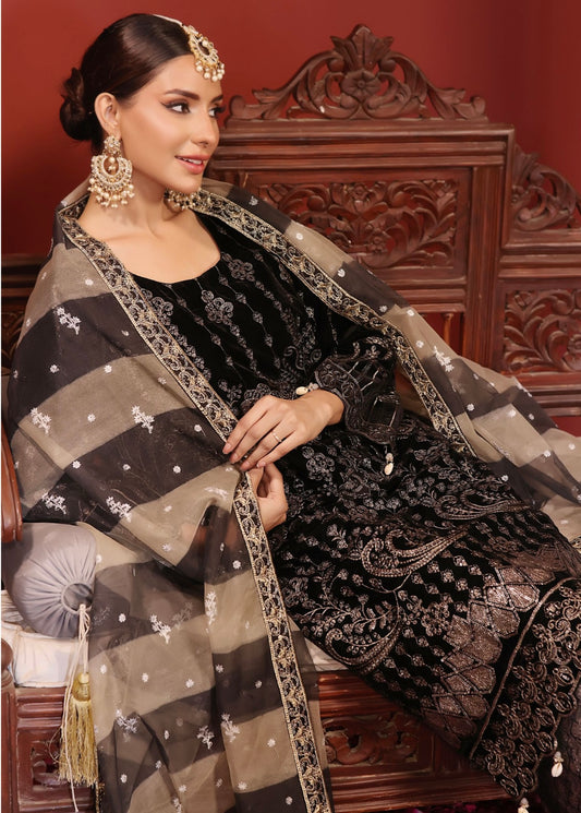 Stitched 3 Piece Embroidered Velvet Suit