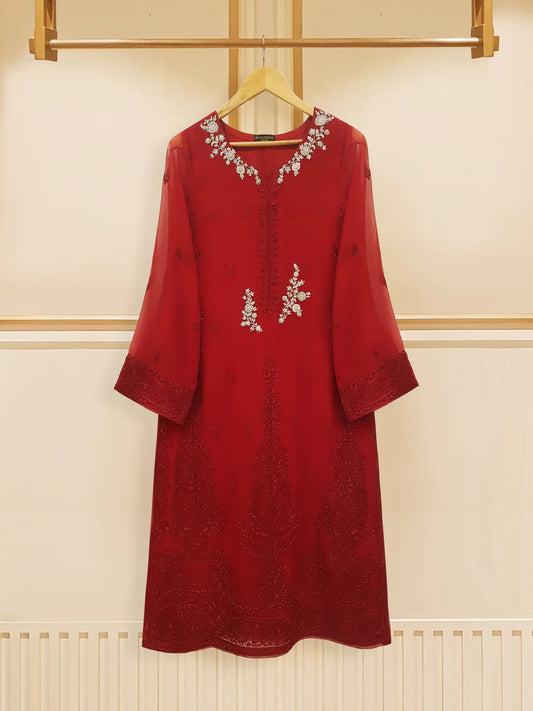 AGHANOOR 2 PIECE 100% PURE CHIFFON EMBROIDERED SHIRT WITH DUPATTA