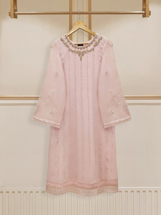 3 PIECE - PURE COTTON NET EMBROIDERED FROCK