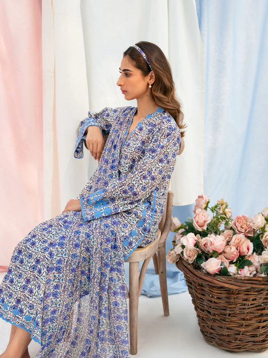 Sada Bahar Stitched 3 Piece Printkari Print Over Chikankari Lawn Suit