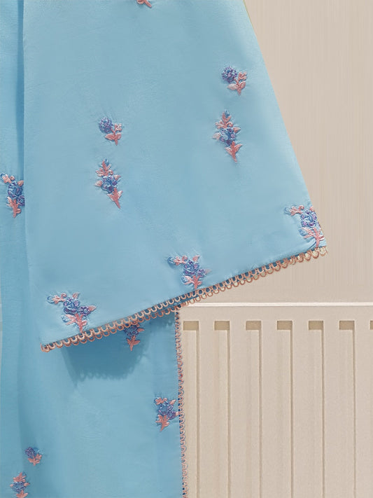 AGHANOOR 3 PIECE 100% PURE CHIFFON EMBROIDERED SHIRT, DUPATTA & SILK TROUSER