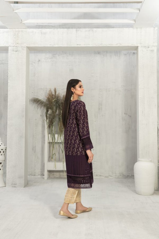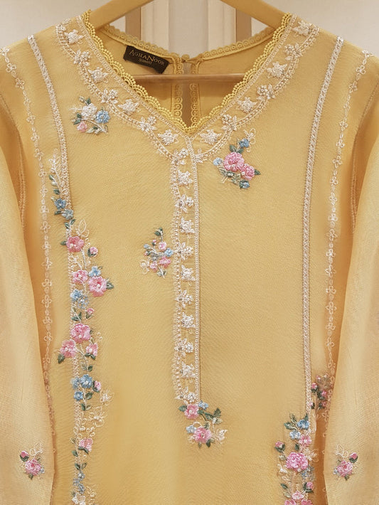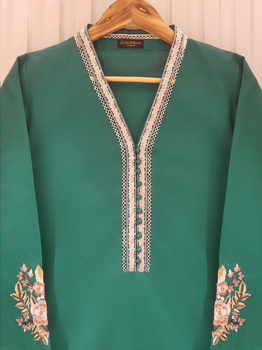 AGHANOOR PURE CHIFFON BEAUTIFUL EMBROIDERED SHIRT AND SILK PANT