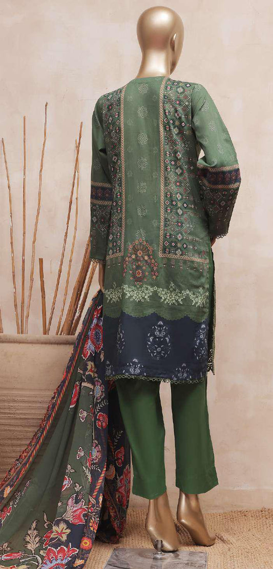 THREE PIECE PREMIUM DIGITAL PRINTED LAWN WITH SILK DUPATTA AND PANT