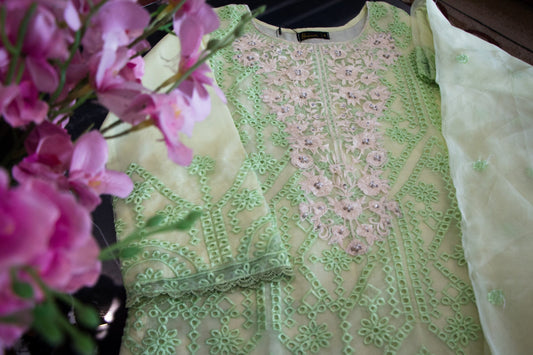 Sadabahar Embroidered Chickenkari Cutwork 3 Piece