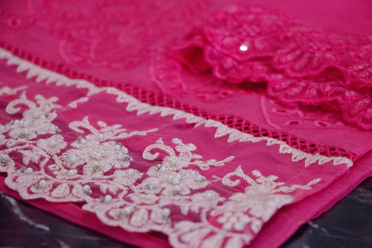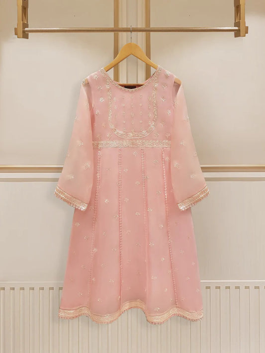 THREE PIECE 100% PURE ORGANZA FROCK WITH DUPATTA AND PANT