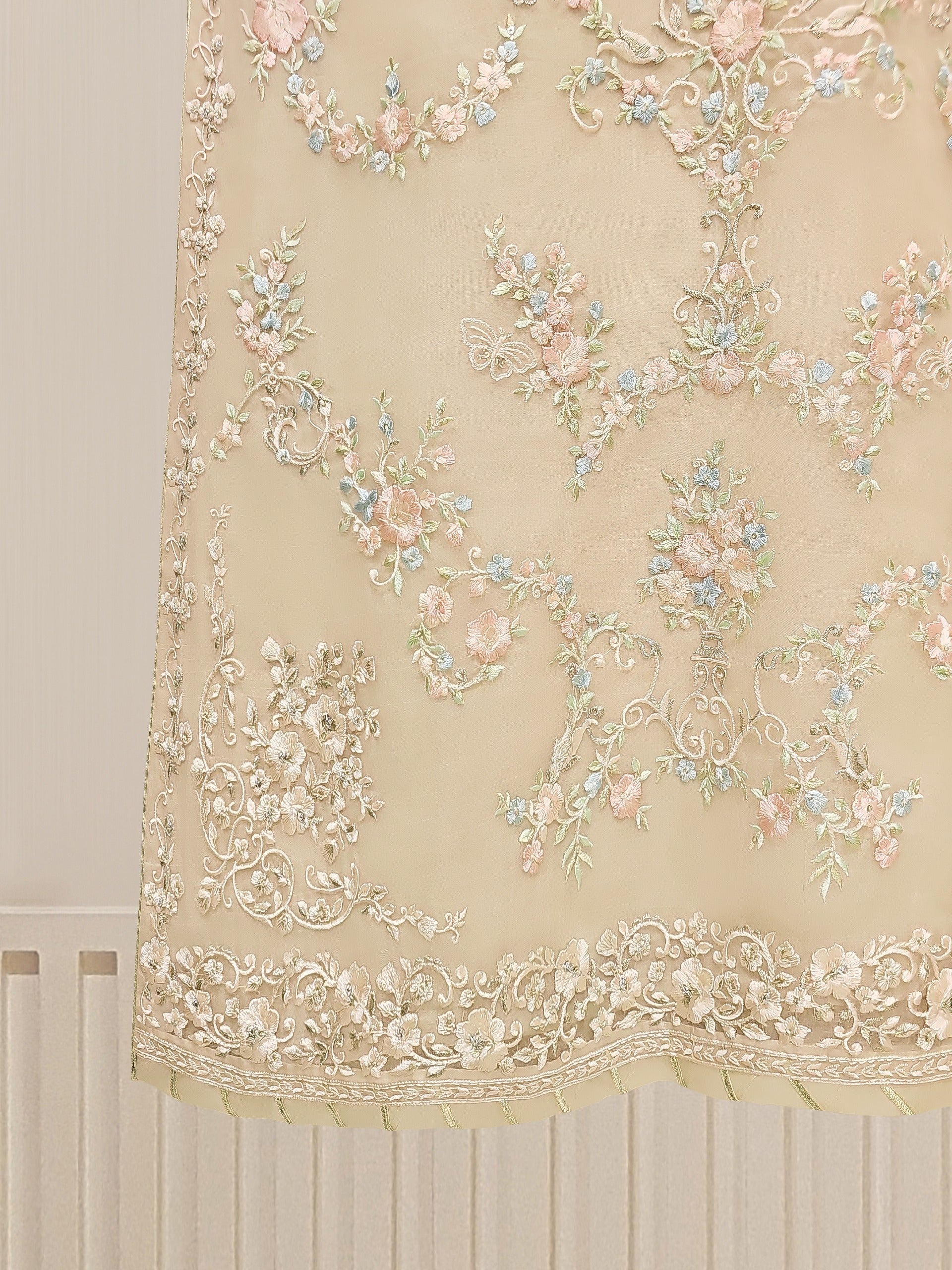 Elevate your style with our beige embroidered organza straight shirt crafted with utmost care and attention to detail. The shirt features intricate embroidery on the front and sleeves, adding a touch of timeless charm.