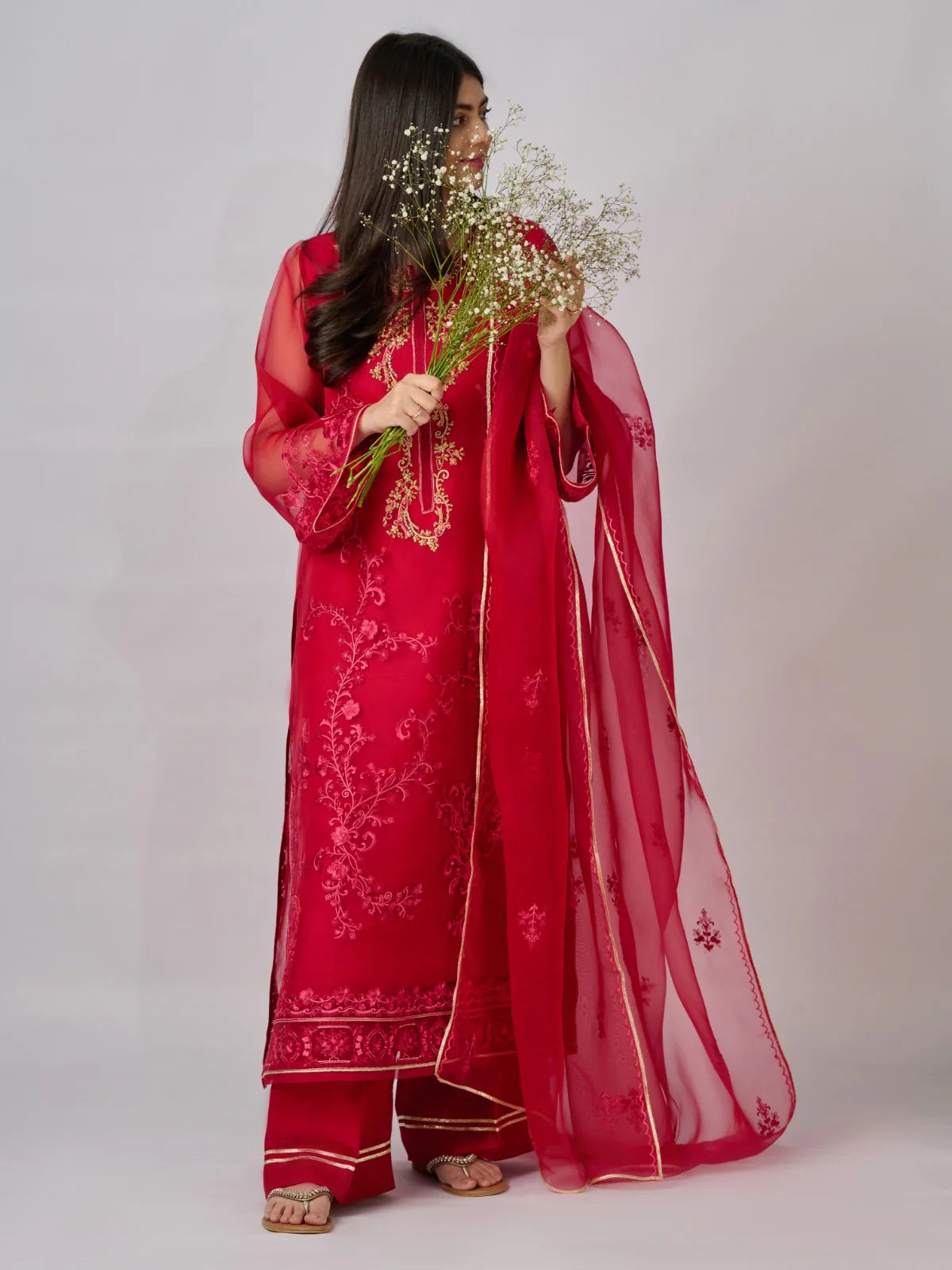 Paired with a matching pant and dupatta