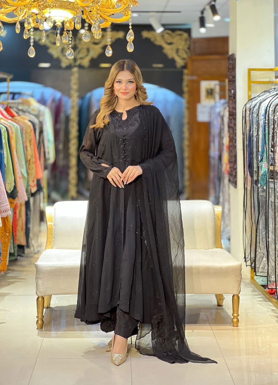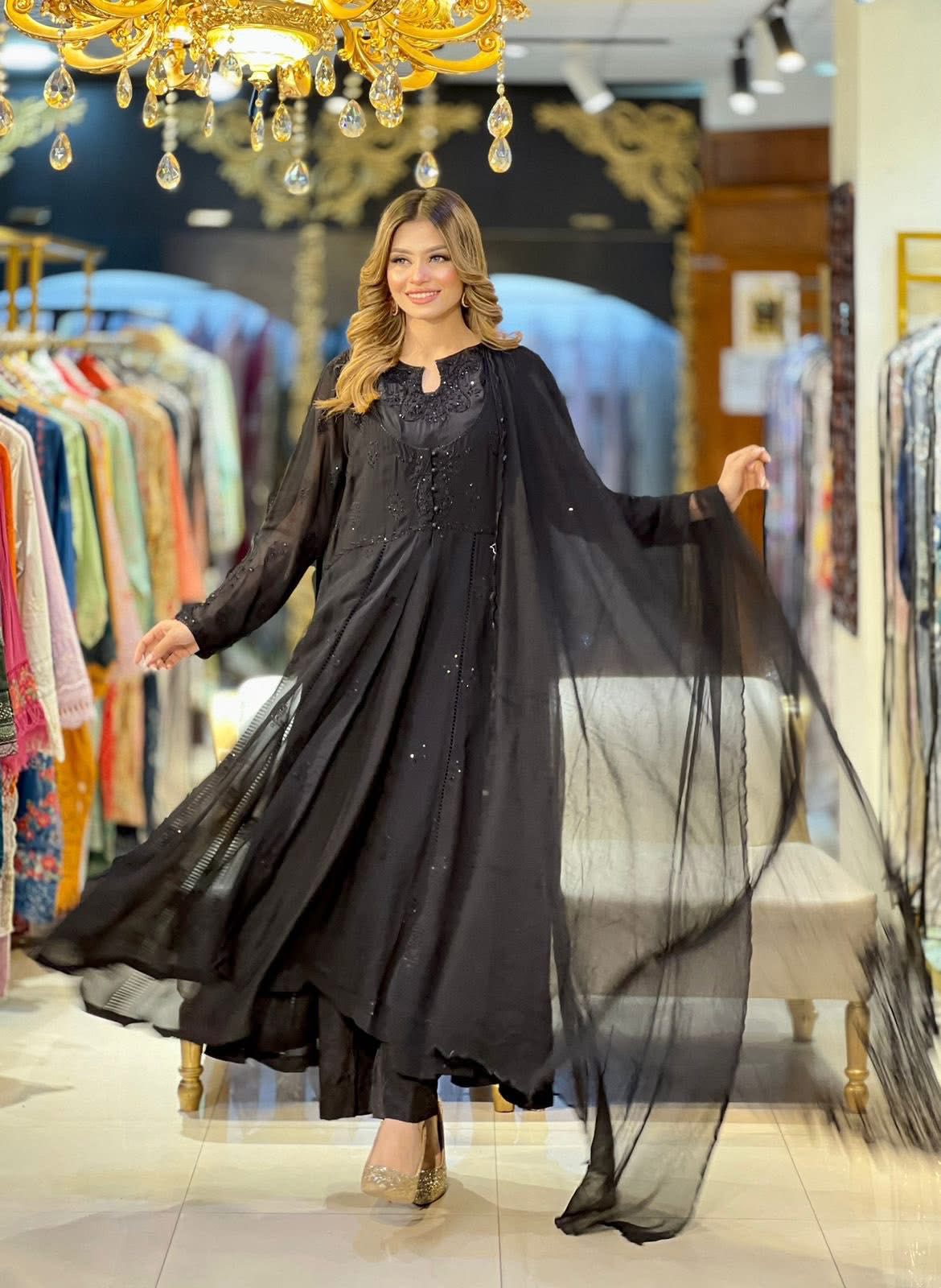 Aghanoor Embroidered Chiffon Frock Style 3 Piece Suit