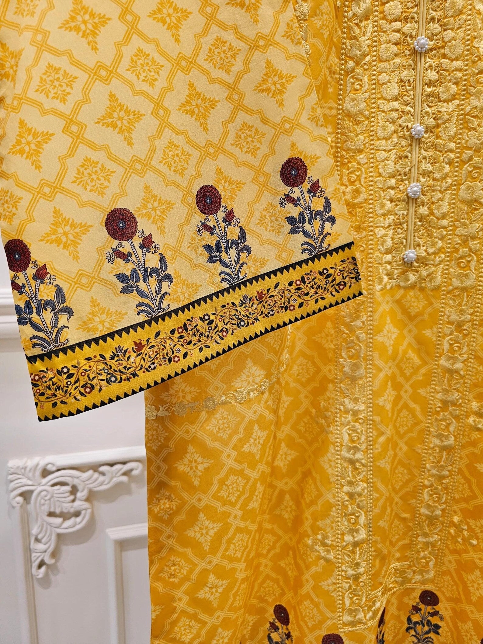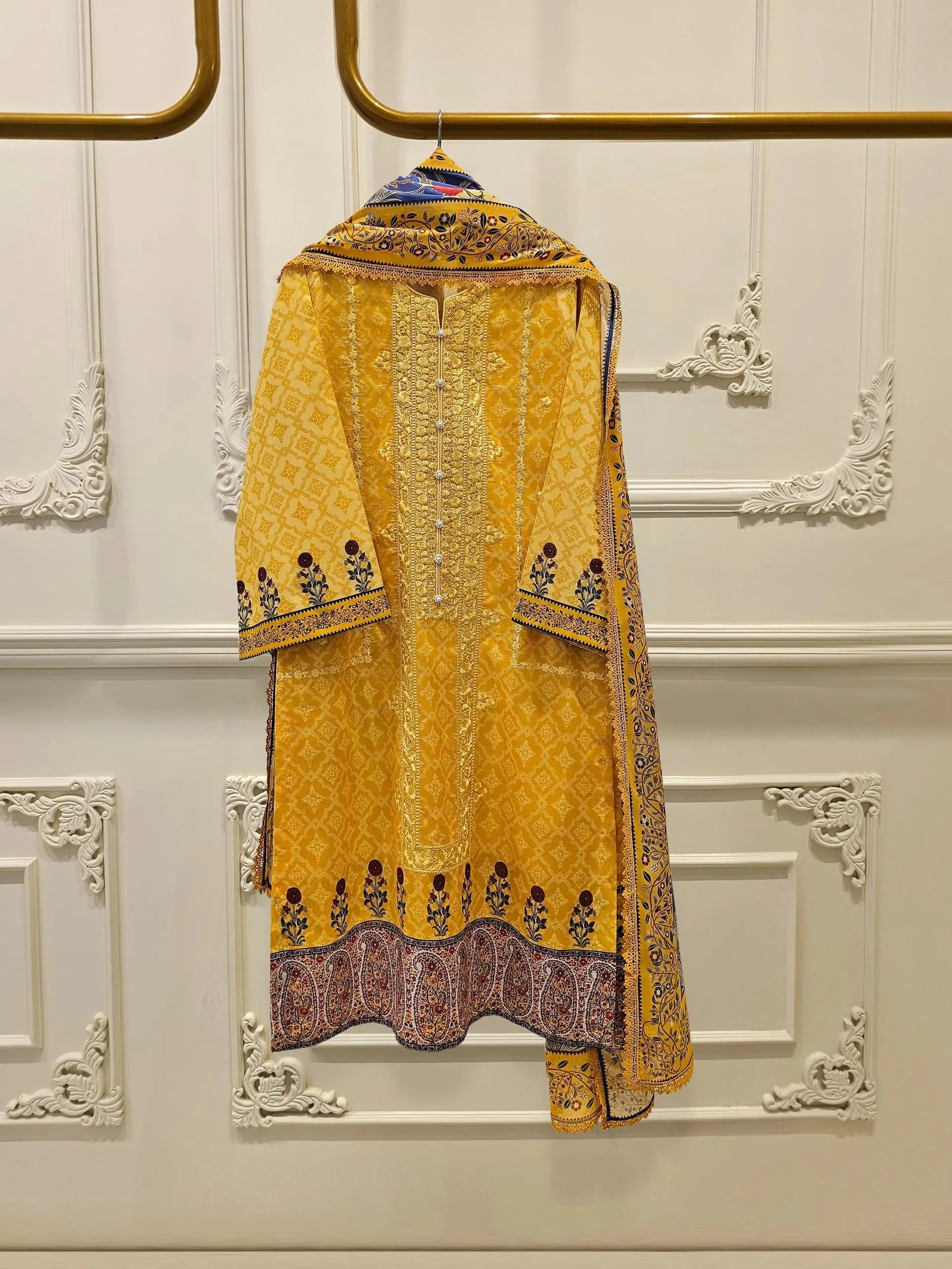 Introducing our vibrant and fashionable lawn embroidered shirt with dupatta perfect for adding a touch of elegance and style to your wardrobe. Made from high-quality lawn fabric, this shirt offers comfort and breathability, making it an ideal choice.