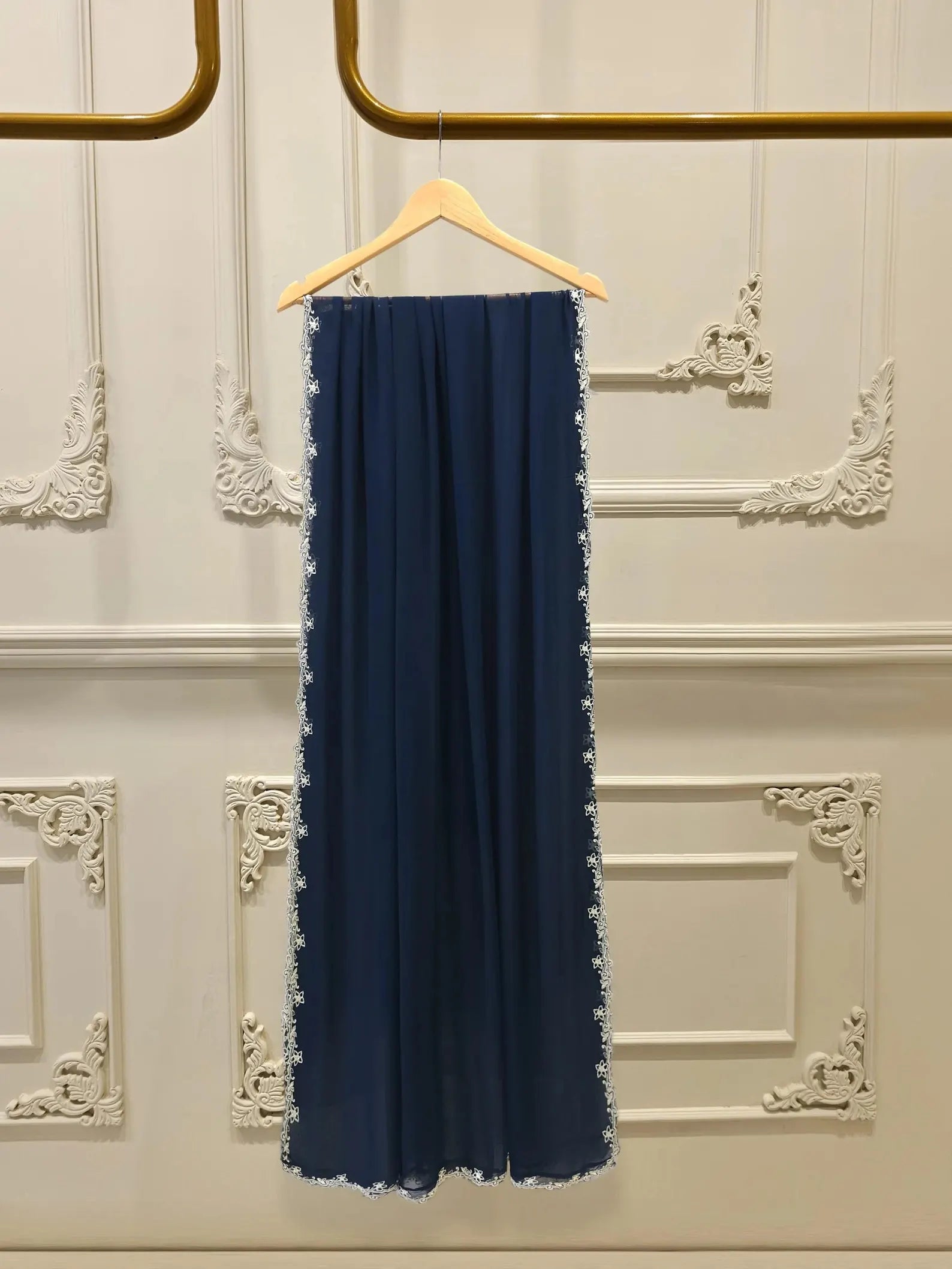 Blue embroidered chiffon straight shirt crafted with utmost care and attention to detail. The shirt features intricate embroidery on the front and sleeves, adding a touch of timeless charm.