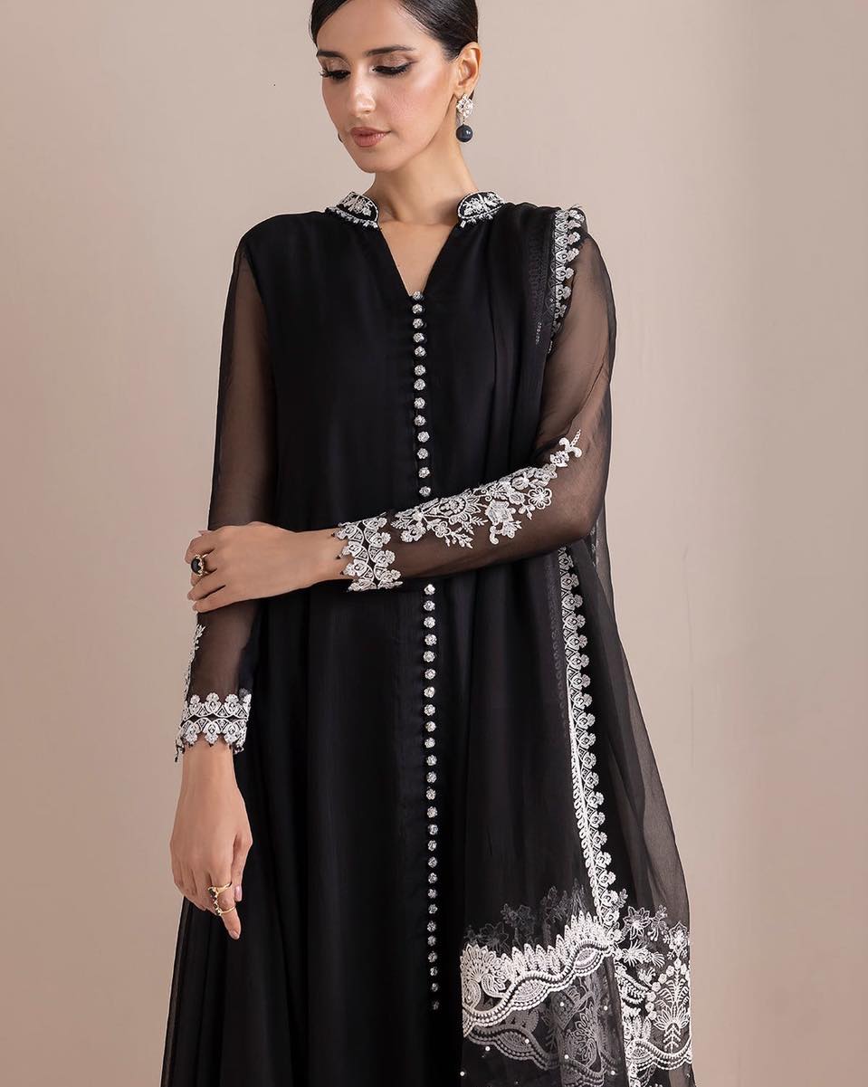 Baroque Pret Embroidered Black Chiffon 3 Piece