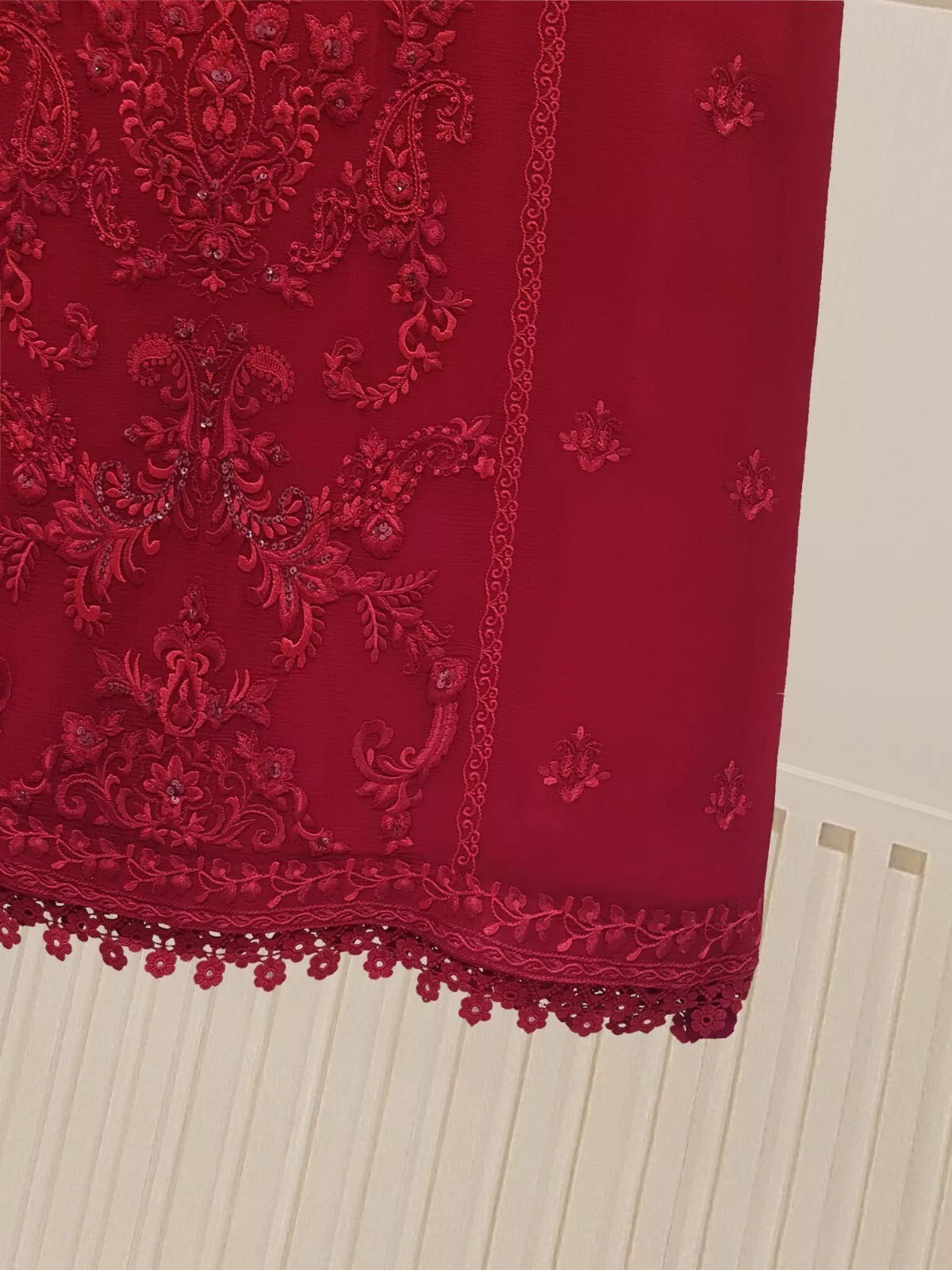 Elevate your style with our hot pink embroidered organza straight shirt crafted with utmost care and attention to detail. The shirt features intricate embroidery on the front and sleeves, adding a touch of timeless charm.