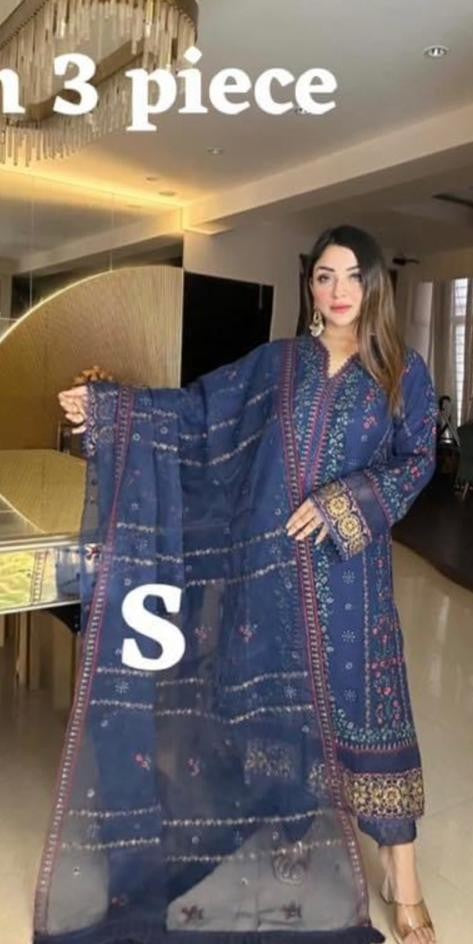 Bin Saeed Stitched 3 Piece Luxury Embroidered Chiffon