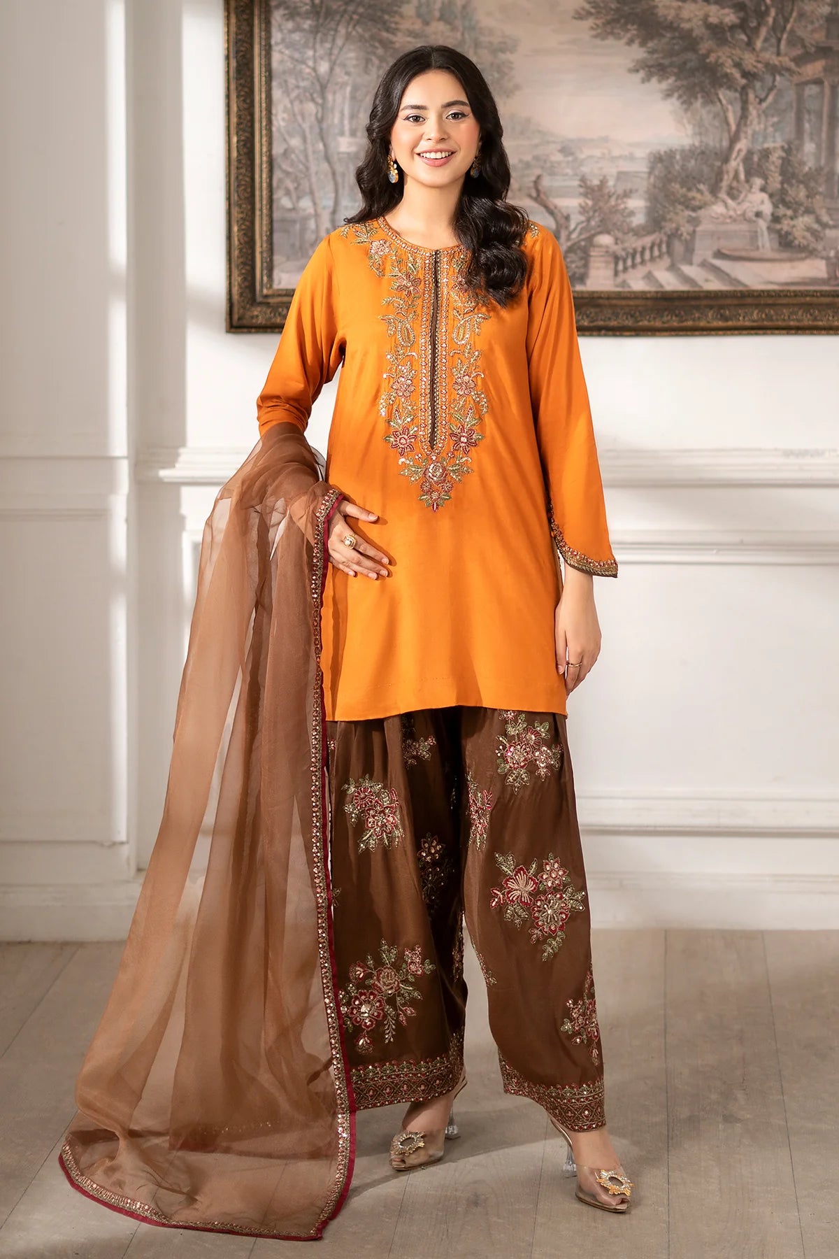 CHARIZMA Embroidered Raw Silk Shirt with Organza Dupatta and Silk Trouser