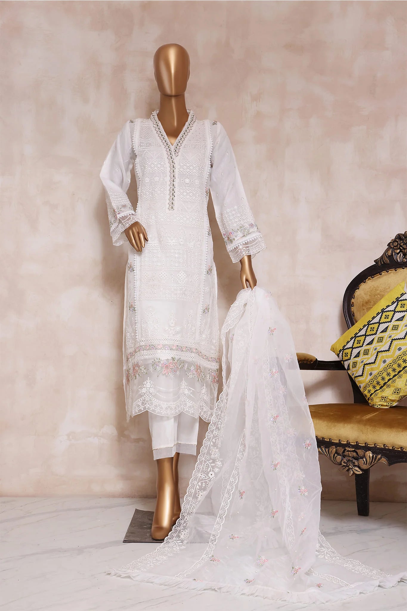 Embroidered Digital Printed Organza 3 Piece Suit