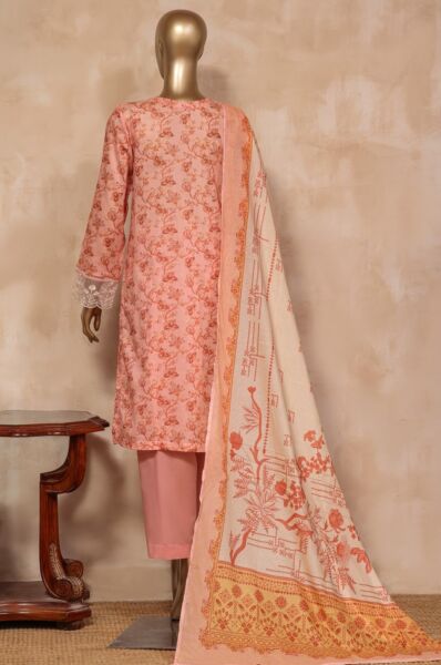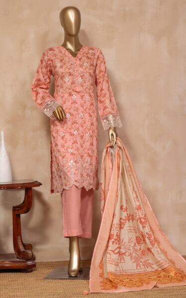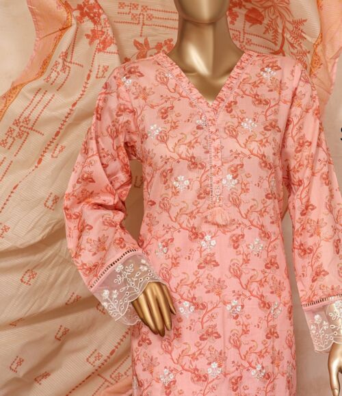 3 Piece Lawn Stitched Cutwork Suit with Printed Lawn Dupatta and Plain Dyed Trouser