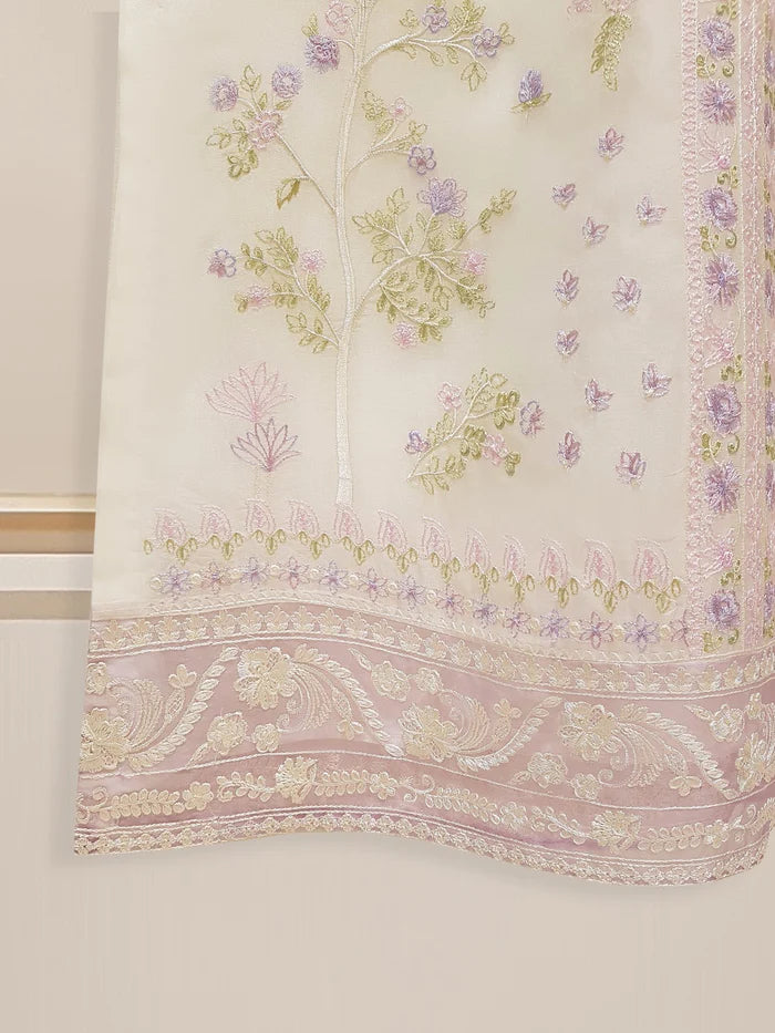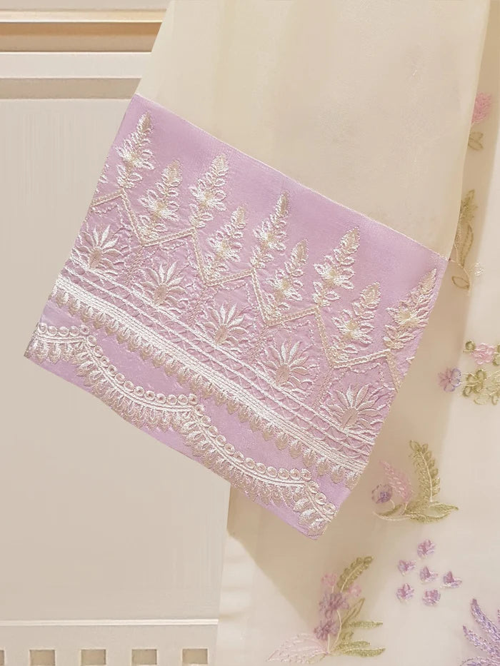 THREE PIECE PURE ORGANZA EMBROIDERED SHIRT, DUPATTA and COTTON TROUSER