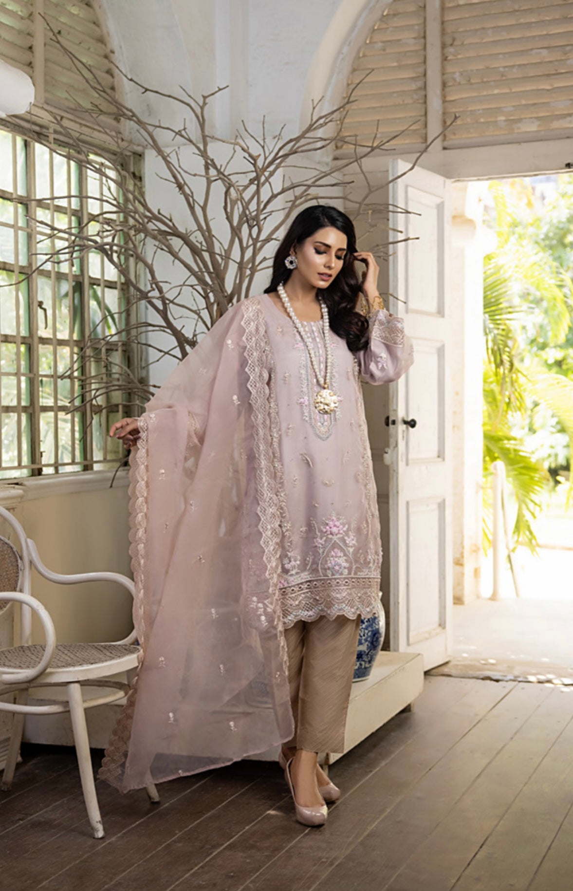 - Matching organza dupatta with all over embroidery